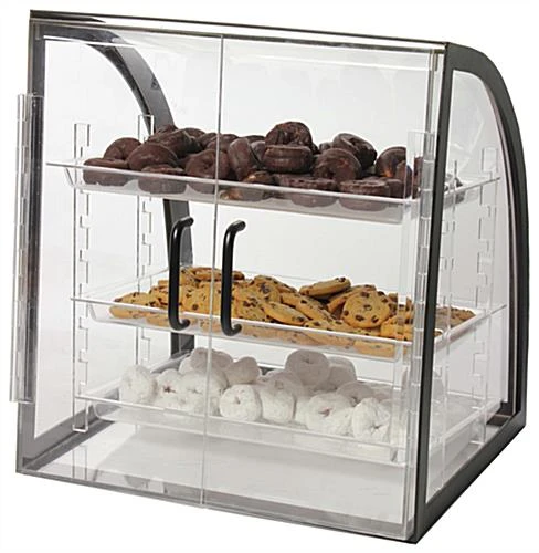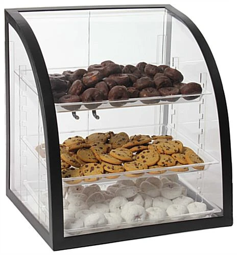 Acrylic Food Display Case W/ (3) Plastic Trays, Black Frame