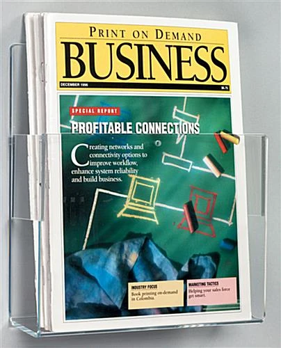 This brochure pocket holder has a time test design and incorporates additional features that set it apart from similar products offered by competitors. What makes this magazine rack better than most units? This brochure pocket holder, also known as a literature display, comes with a removable divider! As a result of the removable peg divider, this rack holds either a single stack of 8.5″ x 11″ magazines or two stacks of 4″ x 9″ pamphlets. The brochure pocket has a depth of 1.5″ to store thick stacks of pamphlets. Another feature that differentiates this unit from other literature racks is that it features an acrylic construction. The acrylic fabrication is completely transparent, which provides customers with a full view of literature stored within.