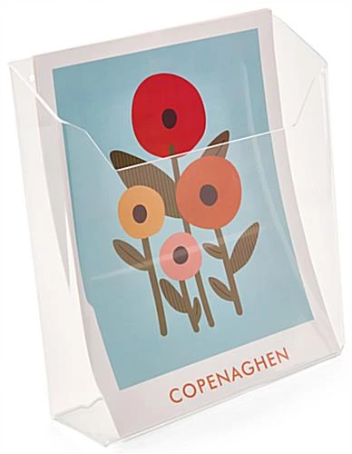 This single pocket lucite magazine holder is designed specifically for displaying 8.5″ wide flyers. The clear plastic rack is able to accommodate all kinds of publications, from large brochures to full-size magazines & catalogs. Each magazine holder mounts easily and securely to the wall using either your own screws & anchors or the enclosed sticky pads.