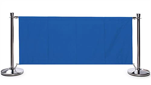 These high quality barriers, blue café banners that are incorporated into restaurant patio designs can also transform appropriate spaces in airports, museums, casinos, retail stores, outdoor concert venues and malls! Each set includes 15 fabric screens and 16 stainless steel stanchions. The heavy duty construction of these café banners ensures they can be used both indoors as well as outdoors. When assembled in a straight line, this barricade is over 100’ long!