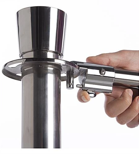 This outdoor café wind barrier has a versatile design which creates multiple area layouts. The custom banners are digitally printed. A wind barrier with full color graphics utilizes advertising space while acting as a crowd controller or a sectional for an outdoor dining area. These stanchion displays are available with single-sided printing. Each wind barrier is great for restaurants, bars or concert venues. Design the custom banners using our available templates. The displays have rubber padding to prevent floor damages.