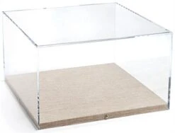 16.75 X 10 Countertop Display Case W/ Lift Off Acrylic Top & Tan Linen Base