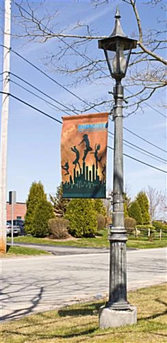 These banner brackets are a cost-effective way to mount 18″ wide street flags along an avenue or walkway. While this set of hardware has a low price point, all of the features customers want in mounting equipment are included. This mounting kit comes with (2) brackets, (4) bandings, (2) poles, (2) pole pins with rings, (2) zip ties and an . Mounting street flags with this equipment is simple and hassle free. This set of banner brackets has a construction that balances durability with affordability. The zip ties connect your flag to the pole rings to ensure the pennant does not slide off the poles. The banner brackets feature a cast aluminum fabrication that is rust resistant. Each pole is made from fiberglass, ensuring it will not break in high winds. The screw gear bandings that secure the banner brackets to a lamppost have a durable metal construction as well.