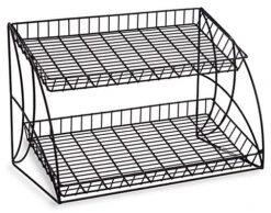 22.5″ Tiered Wire Rack, Countertop, 3 Shelves With Wicker Baskets – Black
