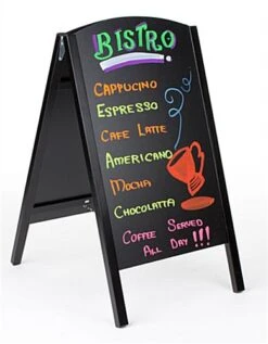 21 X 34 Write-On Board A-Frame, Chalk, Double Sided, Wood Frame – Black