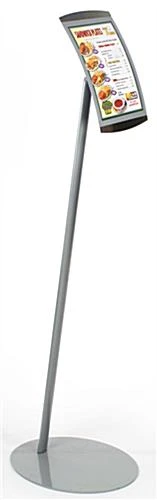 11 X 17 Menu Floor Stand, Magnetic Lens, Curved Frame, Portrait Or Landscape – Silver