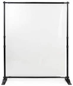 Floor Standing Sneeze Shield, PVC, Portable Aluminum Frame – Clear
