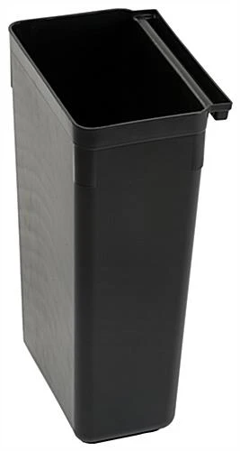 The heavy duty restaurant supply, utility cart refuse bin is manufactured with black polypropylene plastic. This material is capable of enduring daily wear and tear while maintaining longevity. The utility cart refuse bin that is a detachable accessory is constructed with rounded corners and a flat bottom. The curved design allows accidental bumps to occur without resulting in serious damage to both the unit and the walls. The removable utility cart refuse bin is 21-3/4” deep. These heavy duty trash cans are able to withstand an adequate acquisition of weight. This utility cart refuse bin that keeps waste contained when clearing tables is a convenient restaurant supply for busy environments, such as hotels and food service industries.