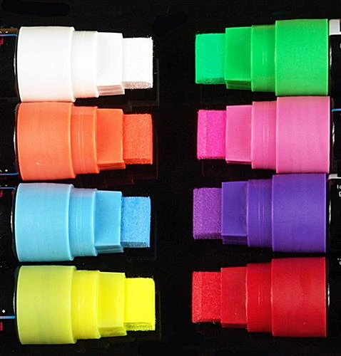 This chalk ink marker is meant for use on any smooth and non-porous surfaces. The neon bright sticks can be used on windows, glass, blackboards, whiteboards and hard plastic (acrylic); however, for the greatest effect, it is recommended that customers use this chalk ink marker set that has bright pigment on flashing light boxes. When the illuminated light-box is turned on, the messages will look as though it is glowing. This non-toxic chalk ink marker, such as the fluorescent pen and neon bright stick, makes ordinary advertising into an eye-catching display to which passerby will be drawn. Another great feature about this neon pen is that the powdered liquid can be easily erased. Even though, this chalk ink marker that is wet-erase can be wiped off, the pigment will not come off by just rubbing off with your fingers. Users will need to use wet or damp cloths in order to clean off the message. A neon liquid pen is offered in other sizes and colors as well (see the related items on the right for more options).