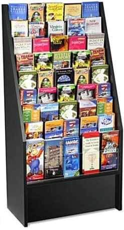 9-Tiered Wood Literature Floor Stand, 4″/8.5w”, 22/45 Pockets – Black