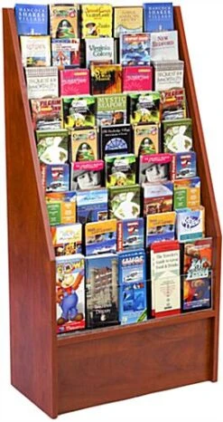 9-Tiered Wood Literature Floor Stand, 4″/8.5w”, 22/45 Pockets – Mahogany