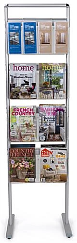 4-Tiered Literature Floor Stand, 4″/8.5″w, 16/32 Pockets, Double Sided – Silver