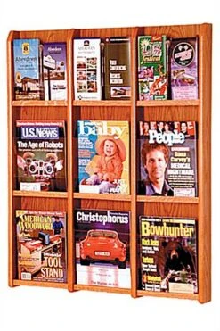 3-Tiered Wood Literature Wall Rack, 4″/8.5″w, 9-18 Pockets – Medium Oak