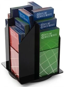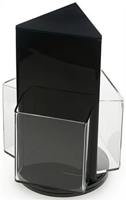 3-Pocket Acrylic Brochure Holder For Tabletop, Rotating – Black