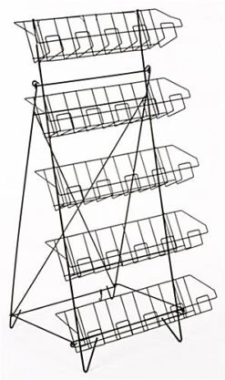 5-Tiered Wire Literature Floor Stand, Open Shelves, Sign Clip, 22.5 X 44.5 – Black