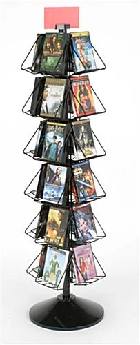 24-Pocket Book Or DVD Stand For Floor, Full-View Pockets, Header Clip – Black