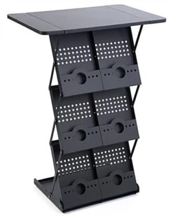 40” Tall Folding Magazine Rack With 3 Literature Pockets – Black