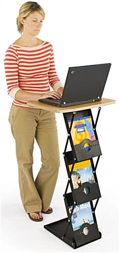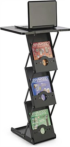 40” Tall Portable Counter With 3 Double Wide Literature Pockets – Black