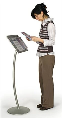 17 X 11 Sign Stand With Brochure Pocket, 4″w, Curved Post, Snap Open – Silver