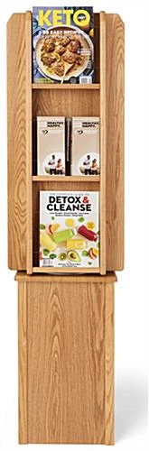4-Sided Literature Floor Stand, Solid Wood, Customizable Pockets, Revolving