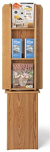 10-Tiered Magazine Floor Stands, 8.5″w, 40 Pockets, Rotating – Medium Oak