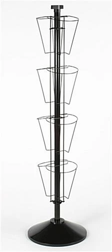 4-Tier Wire Brochure Floor Stand, 4″w, 32 Pockets, Rotating, Header Clip – Black