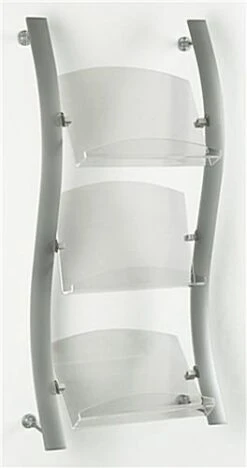 3-Tiered Literature Wall Rack, 4″/8.5″w, 3-6 Pockets, Curved – Silver