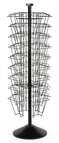 8-Tiered Metal Wire Magazine Floor Stand, 8.5″w, 36 Pockets, Rotating, Header – Black