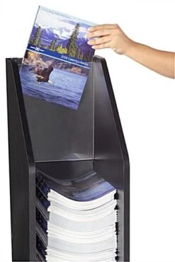 Metal Magazine Floor Stand, 8.5″w, Single Pocket, Tilting, Sign Holder – Silver