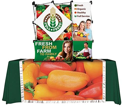This 3 x 3 pop up is a show stealer with its 3D design and full-color panels! The trade show stand adds visual appeal to a tabletop or counter within a booth, helping to promote a business or products on display. Arriving as a fully assembled kit, this custom pop up includes 5 panels in 3 shapes that are already attached to the frame to reduce assembly time. Each fabric graphic is printed with customer-supplied artwork on a single side, ensuring that this Micro GeoMetrix™ kit conveys the perfect message to engage customers in an exhibit booth! Despite being offered with premium dye-sublimation printing, the affordable pop up is available at a low price to still make an impressive display without breaking your budget. At nearly 43” tall, this tabletop exhibit is large enough to capture the eye of passing crowds. As an additional benefit, 3D graphics are interchangeable, easily unhooking from the frame and reattaching to create new promotional configurations. Assembling the pop up is just as easy, with two people pulling from opposite corners to expand the display in seconds. When the trade show is over, collapse the Micro GeoMetrix™ stand back into a compact shape and pack away in the included soft carrying bag for safe traveling and storage.
