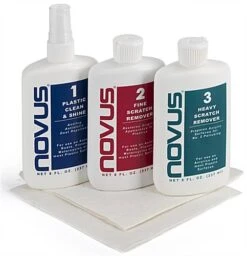 NOVUS Complete Plastic Polish Kit with Three 8 Ounce Bottles and Two Microfiber Cloths
