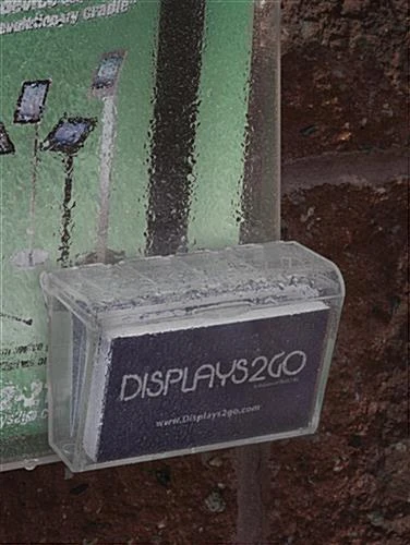 Improve your marketing game with this multipurpose outdoor literature dispenser. Display your single-sheet flyers, magazines, catalogs, and more in this acrylic brochure holder. Providing added functionality, this is a combination literature dispenser with business card pocket. Designed for interior and exterior use, this brochure holder features an overlapping, hinged lid that protects your flyers from the elements. Each literature dispenser is constructed with two pre-drilled holes for easy wall mounting. Attach the accompanying small front compartment to the acrylic brochure holder before interior or exterior installation. Wall mounting hardware is not included.