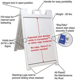 24 X 36 Sidewalk Sign For Posters, 2 Sided, Non-Glare Lenses, Fillable Base – White