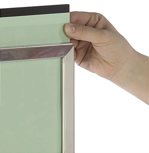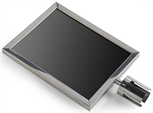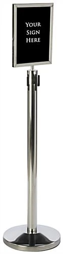 This silver 11” x 14” stanchion sign holder is ideal for large parties & events. Display custom messages to your attendees atop a retractable crowd control post to keep order in busy environments! The stainless steel sign holder features a double sided frame with 2 anti-glare lenses to protect your graphics while on display which can be printed right from most home or office printers! Additionally, the thick PVC insert can be printed on directly! Bring the insert of the sign holder to your local sign shop to have a permanent message applied. Each event display is designed to pair perfectly with our retractable crowd control post (sold separately)!