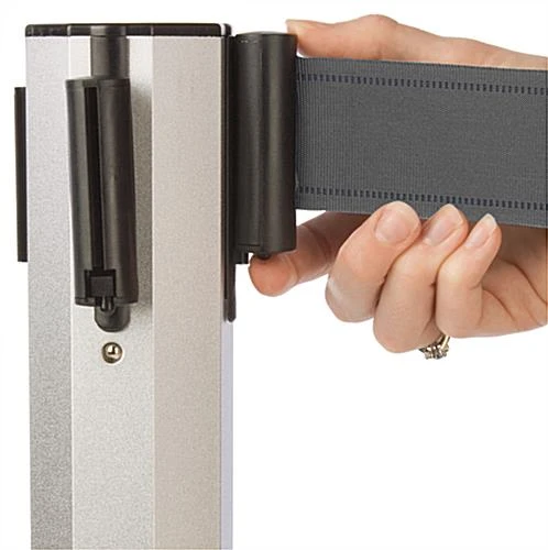 Crowd Control Barrier: Deluxe Line Octagonal – Sparkling Silver w/ 9′-7″ Gray Belt
