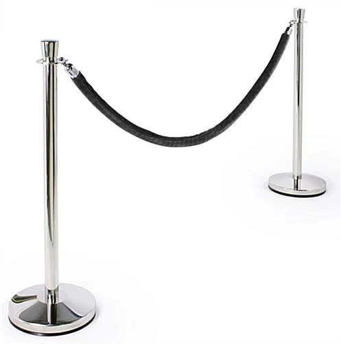- Classic tulip-top post design features polished chrome-finish posts (mirror-finish stainless steel construction) and black velvet hanging rope; provides an upscale means of crowd control, line queuing or display protection