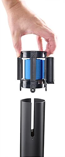 This crowd control stanchion with a blue belt and a metal black powder-coated base is an affordable indoor line divider for any cafe, concert, and retail shop. The 2″ wide retractable belt can extend to 6.5-feet in length and connects to a second upright post with ease. Our metal crowd control stanchion belt has a black powder-coated finish to provide longevity to the unit. This retractable line divider can be easily adjusted to accommodate and navigate small or large groups of people in banks, fairs, and lobbies. The weighted 12.6″ round base features a rubber bottom to avoid scratching floor surfaces. Our indoor crowd control stanchion is a valuable mass event solution for any restaurant, tradeshow, grand opening, or other live production!