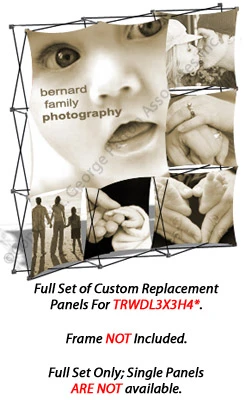 PLEASE NOTE: THESE REPLACEMENT GRAPHICS ARE ONLY FOR THE TRWDL3X3 SERIES OF TRADE SHOW POP-UPS!