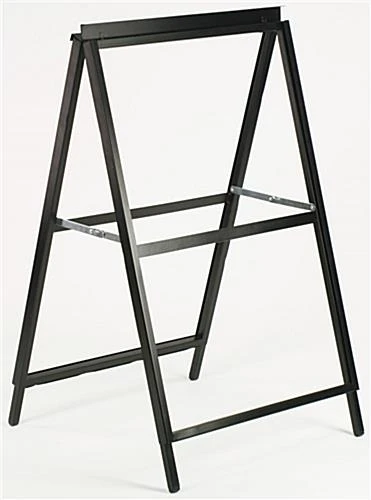 This real estate sign is a terrific sign frame for property sale advertisements. The real estate sign features a heavy-duty 3/4″ angled steel frame, which prevents the sign frame from tipping over in heavy winds. Real estate signs, also known as property signs are powder coated black to add a sharp, professional look to sale advertisements. For your convenience, the real estate sign comes fully assembled and ready to use. Real estate sign frames are supported by two metal hinges, which fold down so that the unit may be collapsed and stored when not in use. When folded, the real estate sign has a slim profile of only 2-3/4″, making it easy to store the yard sign virtually anywhere.