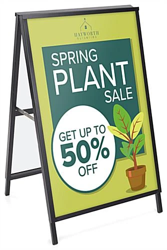 With the double-sided real estate sign, you can display 2 different advertisements in the same sign holder. This gives you twice the exposure of ordinary sign frames! Each side of the real estate yard sign can accommodate a 23-1/2″ x 35-1/2″ graphic with 22-1/4″ x 34″ of viewable area. Please note that the real estate sign does not include a plastic protective lens, leaving your displays exposed to rain, snow, and other natural elements. For this reason, we recommend using either Coroplast or Sintra (expanded PVC) substrates with UV printing, silkscreen, laminated, or vinyl graphics. Graphic exchange is made easy with the real estate sign’s simple slide-in design. The real estate sign includes a poster-securing channel, which can accommodate signs up to 1/4″ thick. To change out signs, simply lift the hinged top cover and slide your poster in or out of the sign holder channel.