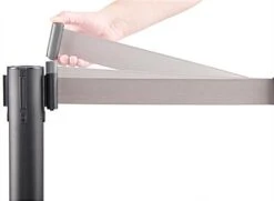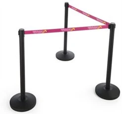 QueuePole.Economy 42″ Black Stanchion Post With Dual 6.25’ Retractable Belts – Black