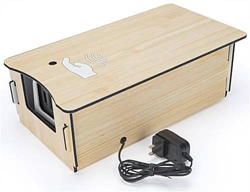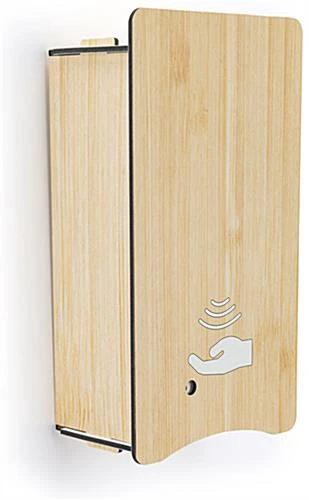 This wall mounted sanitizer with dispenser cover has a natural faux-wood finish for a design-forward sanitizing solution in your office, waiting room, retail store, or café. The hands-free design meets ADA height and reach standards while also minimizing the number of surfaces being touched, helping you maintain a more sterile business environment. Each modern wall mounted sanitizer with dispenser cover is powered by four C-Cell batteries and our AC adapter HSDISP12V (sold separately) can be used as an alternative power source solution. This automatic unit’s overall compact design will not interfere with your business’s interior aesthetics. The faux-wood housing has a convenient hinged design that allows you to lift and remove your sanitizing fixture when refills are needed. This hands-free device does not use any complex cartridge refills, making for a simple free-pour loading style when more gel is required. This faux-wood wall mounted sanitizer with dispenser cover is a wonderful way to create a sterile environment in your waiting room, restaurant, boutique, or anywhere else there is a large influx of people!