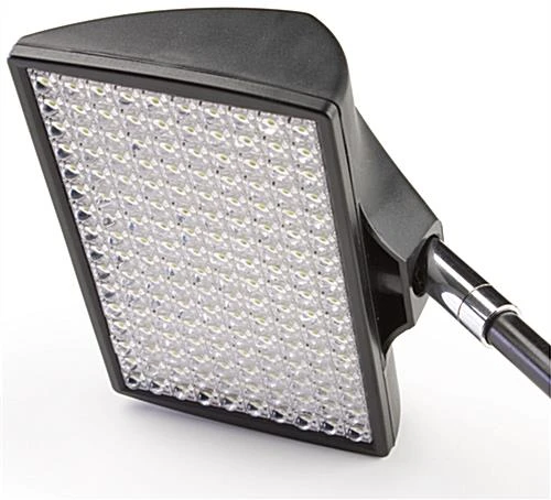 Go green with LED trade show booth lighting. As trade show regulations change, companies make concerted efforts to “go green.” Our trade show booth lighting is perfect for every exhibitor. LED lights are safer and more energy-efficient, using only 12 watts of power to illuminate your trade show displays using eight times less energy than comparable halogen bulbs. Our trade show booth lighting will illuminate your exhibit booth and help to showcase your displayed products and services. LED lighting is brighter and more neutral in color when compared to halogen or incandescent lights. Our booth lighting meets ADA height and reach standards and is UL approved.