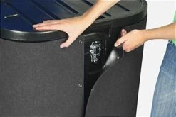 10′ Curved Pop Up Display W/ Custom Header, 2 Spotlights & Portable Counter – Black