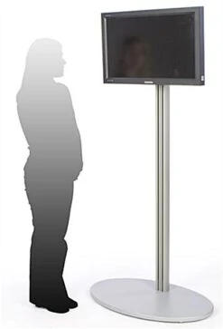 TV Stand For Floor Fits Monitors 32 To 60-Inch, Stationary, Oval MDF Base – Silver