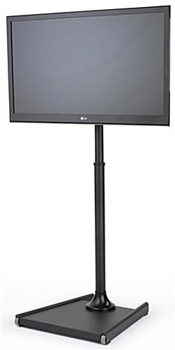 This conference room tv stand that has a weighted base is sturdy and provides a lasting lcd or plasma screen mount for use during office presentations. These office monitor mounts can be used during a sit down meeting or for a stand up presentation with the adjustable steel pole. This black finish conference room tv stand is an ideal fixture for any office meeting space. The base faces inward so it can be hidden under the table and out of the way of foot traffic. This conference room tv stand is economically priced and meant to last! This display mounts lcd or plasma screens or even large computer monitors. This conference room tv stand has a black finish to blend well in any environment. This office monitor cart is ideal for meetings when placed at the head of a table for all to see. This conference room tv stand has a space to hide wires in the hollow steel post. This plasma mount is economically priced and ideal for offices of all sizes!