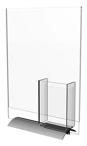 This stand up 11” x 14” sign frame with flyer pocket is a necessary marketing tool for a variety of businesses. Schools, hospitals, real estate offices, and retail stores will all benefit from using these stands that feature convenient brochure compartments. Use this poster sign frame to advertise products or services while providing supplemental information in the form of pamphlets held in the unit’s side holder compartment. A high end aluminum base snaps onto the acrylic signage holder, giving the display an upscale appearance. For added convenience, the sign frame folds flat for shipping and storage. The 5.25”h brochure compartment will hold enough leaflets for distributing to potential customers.