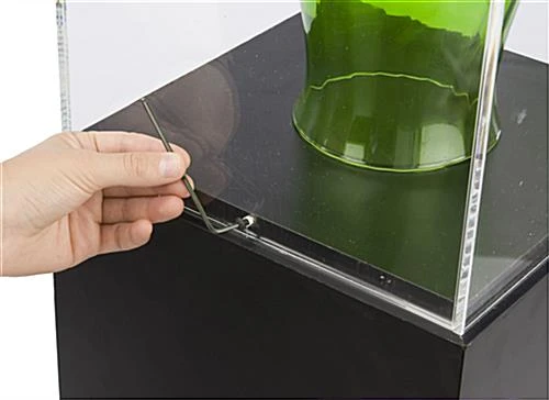 This pedestal display case features a simple locking design that is ideal for museums and special exhibitions. The acrylic case locks with an allen wrench to protect items from tampering. The matte black finish suits any decor. The low price point makes this display case a very affordable option for individual or bulk purchases. Please note that this display works well in museums, but because the case is acrylic and not glass it is not true “museum quality.”