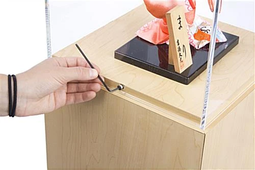 The pedestal display case can be used to highlight on-sale items, special collectibles or even jewelry, trophies and sports memorabilia. This store fixtures display, pedestal display case has a 17″h acrylic top, providing you with plenty of space to showcase taller items, such as trophies, dolls or sculptures. The pedestal display case, like store fixtures, is a great way to highlight special products, awards or collectibles! Jewelry showcases made from acrylic and maple laminate will save you money yet still provide you with striking display stands for your home, office, store, gallery or museum!