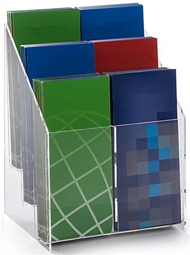 Acrylic Brochure Racks – A Top Seller!! This literature display is great as a brochure rack, literature holder, or countertop display. The pamphlet holder has six pockets for 4″ by 9″ brochures with a standard 1-1/2″ tier height.